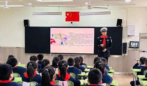 現場,趙勇哲警官從認識交通標誌標線、步行安全、乘坐安全等三個方面臨全校師生進行了教育,並以長時間交通安全作業的方式倡議全校學生文明出行、安全出行。