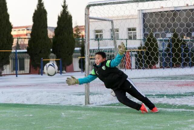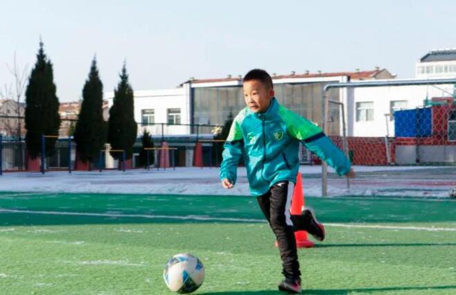 在鳳鳴小學的足球場上,慢跑、變速跑、斜傳直插操練……一系列熱身動作結束後,足球隊員們開始了今日的練習日常,零下十幾度的氣候也阻撓不了他們踢球的熱心。一次次奔馳,一次次傳球,一次次射門、防守,一場足球比賽,必須像駿馬一樣不斷奔馳,數次跌倒,數次翻身而起。這便是這些足球小將每天的練習日常。