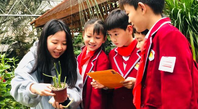 枝繁葉茂的校園,依靠環浜,校園的一角,「稚趣園」「怡心園」「生態園」「百草園」散布而建,那是不同年級孩子們進行主題歸納活動的場所。上一年,孩子們做了一件不同尋常的事,在自然學科、生態環境社團指導教師桂沁怡的帶領下,同學們對校內綠色栽培情況展開了一場調研。