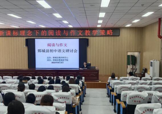 鄄城縣教體局在舜泰校園召開初中語文新課標下的閱覽與作文教學策略研討會。鄄城縣教體局黨組成員、教科研中心主任李自俊,鄄城縣教體局初中學段負責人高超,鄄城縣教體局語文教研員李英霞及全縣初中語文學科帶頭人共計100余人參加會議。